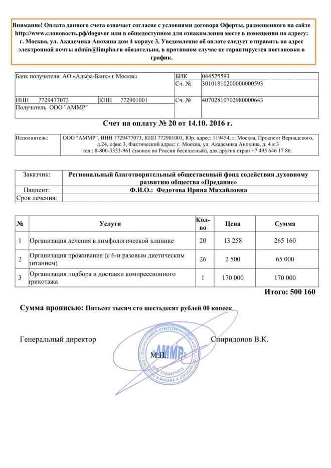 Собранные средства переведены в счет оплаты лечения Ирины Федотовой в специализированной клинике "Лимфа"