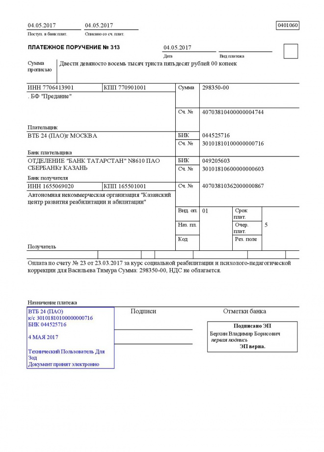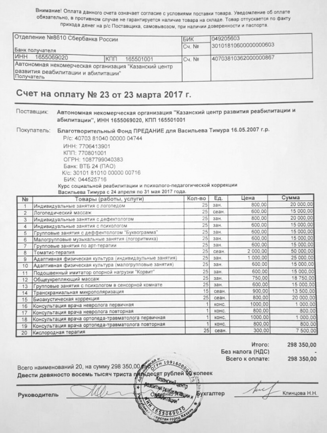 Оплачен курс социальной реабилитации и психолого-педагогической коррекции для Тимура Васильева