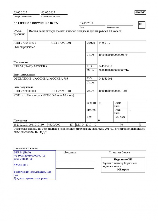 Перечисление налогов и взносов за апрель 2017 года