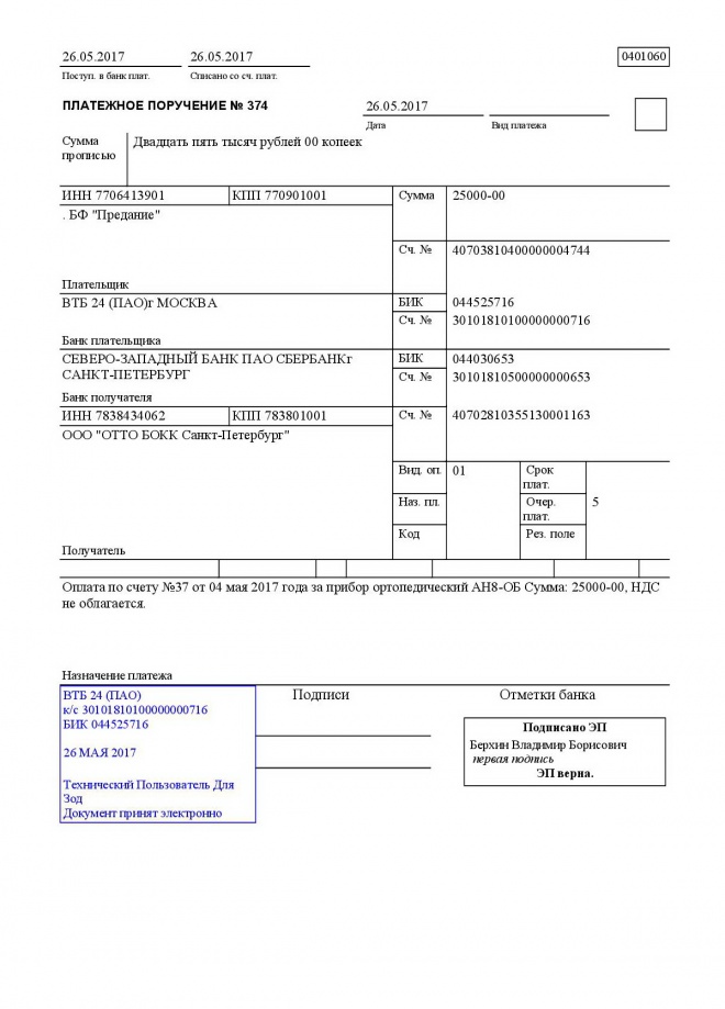 Пожертвование согласно ст.582 ГК РФ. Без налога (НДС)