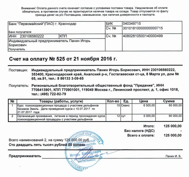 Пожертвование согласно ст.582 ГК РФ. Без налога (НДС)
