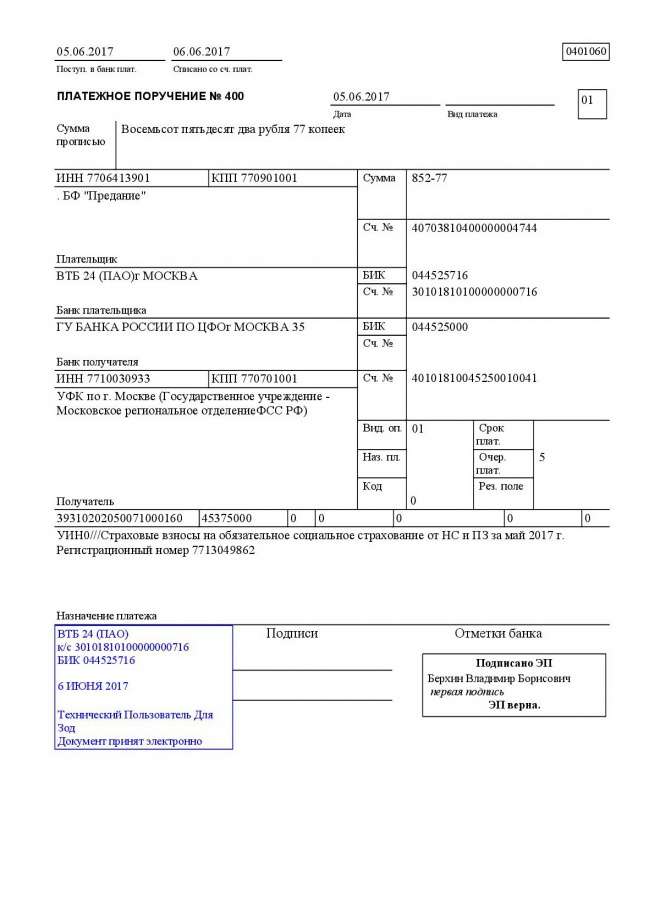 Перечисление налогов и взносов за май 2017 года