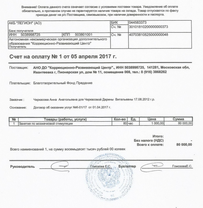 Оплачен курс реабилитации Дарины Черкасовой в АНО "Коррекционно-Развивающий центр"