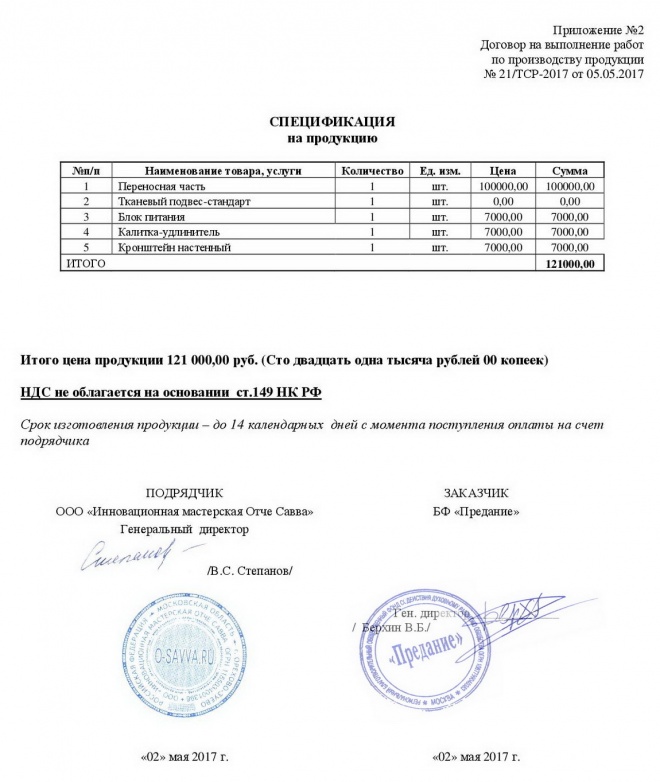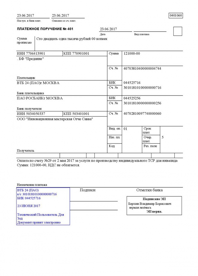 Пожертвование согласно ст.582 ГК РФ. Без налога (НДС)