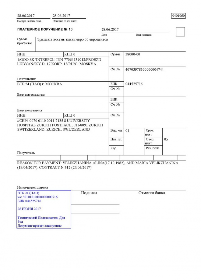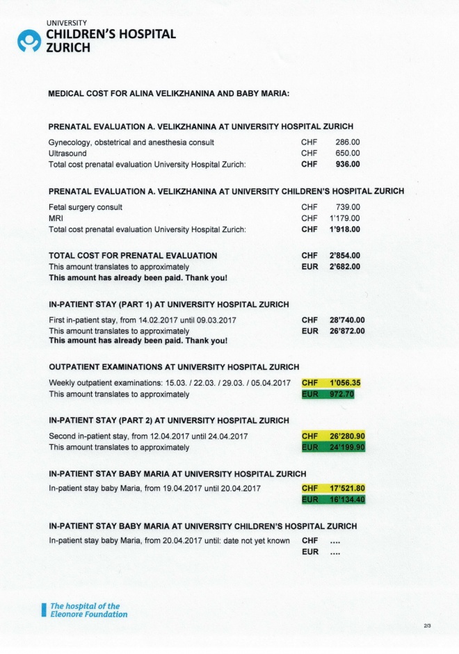 Частично оплачен еще один счет за лечение Алины и Маши Великжаниных в клинике г. Цюрих