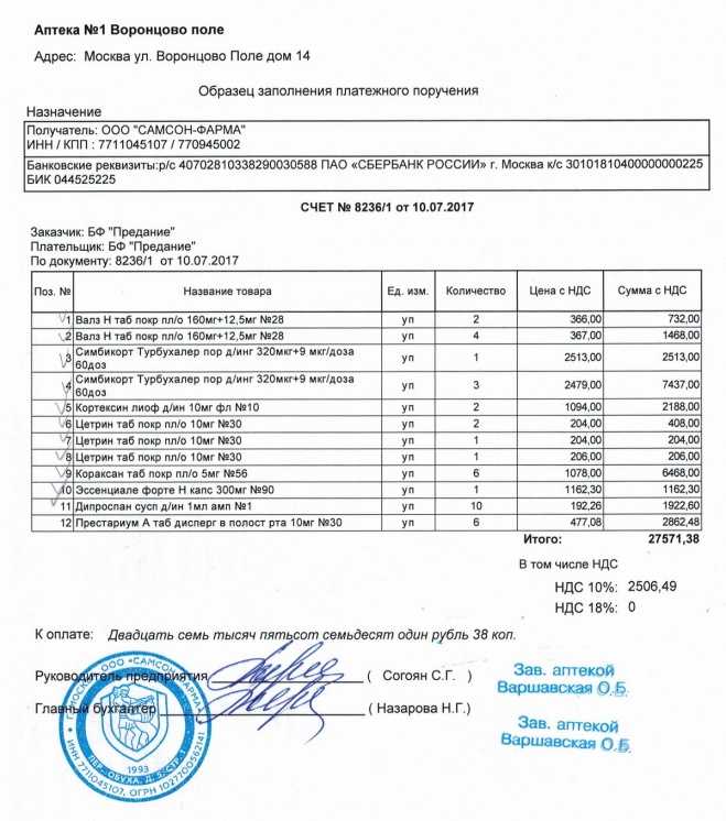 Лекарства для Владимира Александровича Голова