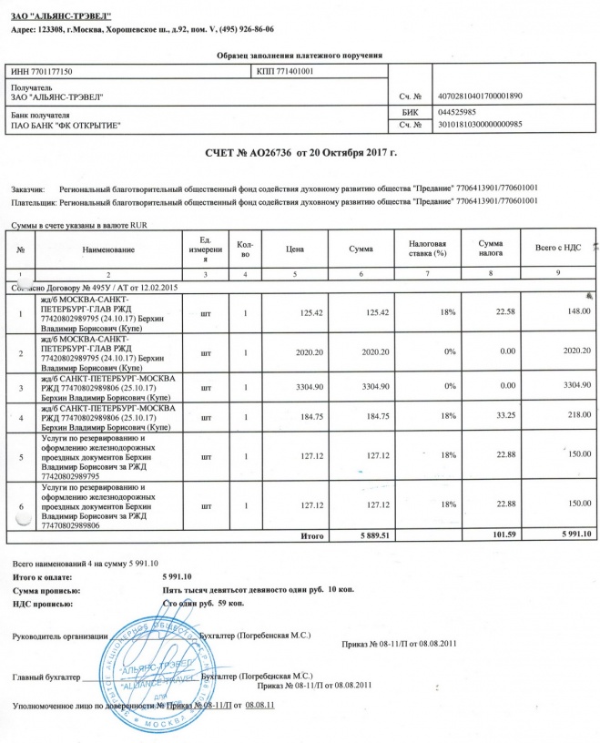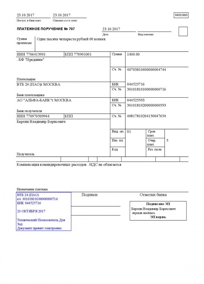 Оплачены билеты и командировочные расходы президента фонда Владимира Берхина