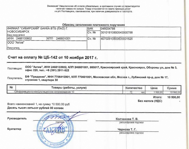 Оплачены работы по разделению базы 1С. Это необходимо для проведения полноценного финансового аудита фонда "Предание"