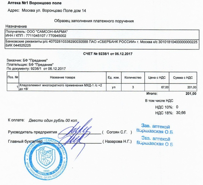 Пожертвование согласно ст.582 ГК РФ. Без налога (НДС)