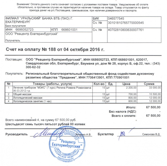 Пожертвование согласно ст.582 ГК РФ. Без налога (НДС)