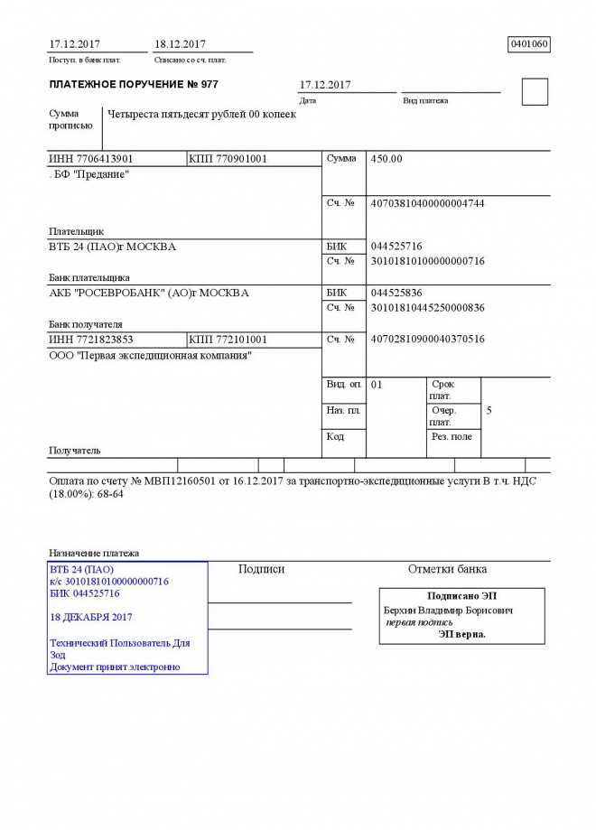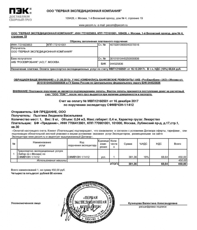 Пожертвование согласно ст.582 ГК РФ. Без налога (НДС)