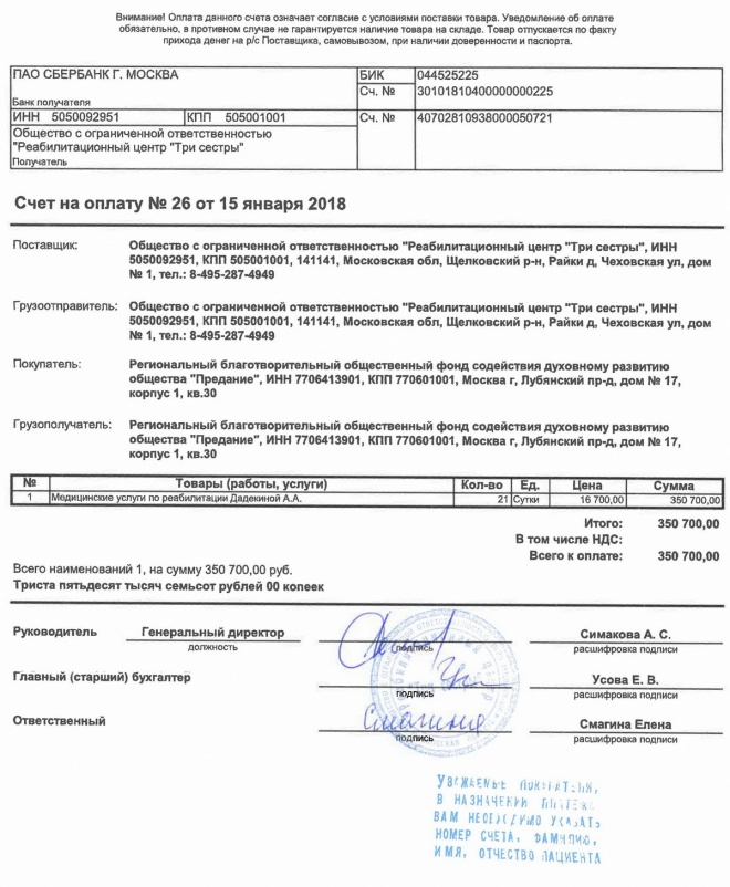 Оплачен курс реабилитации Саша Дадекиной в центре "Три сестры"