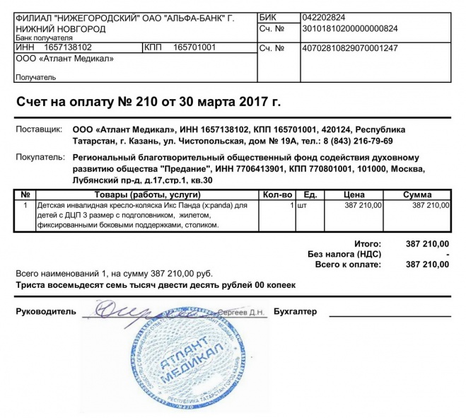 Пожертвование согласно ст.582 ГК РФ. Без налога (НДС)