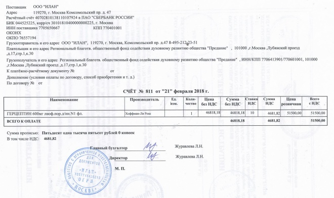 В рамках программы "Болезнь не будет ждать" мы купили препарат "Герцептин" инвалиду II группы жительнице ДНР Людмиле Самойловой, страдающей онкологическим заболеванием