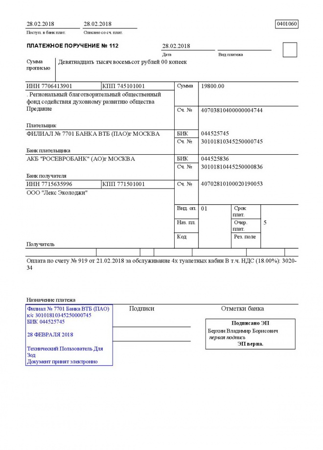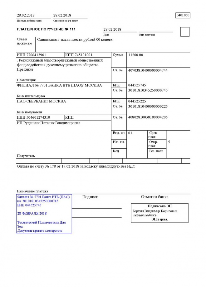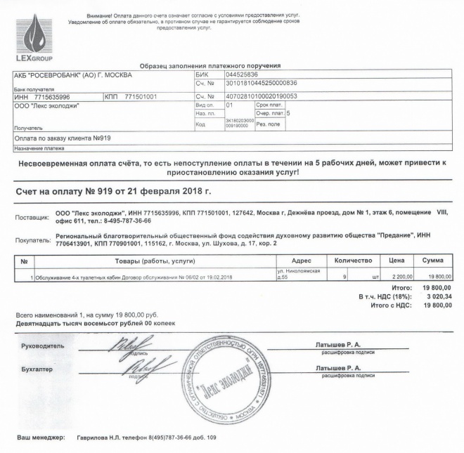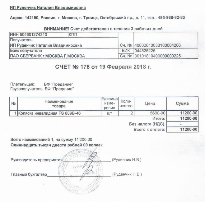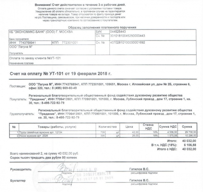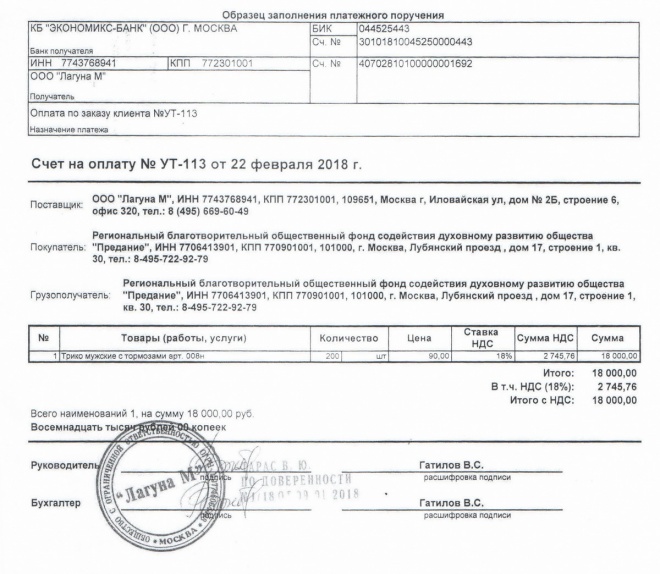 Пожертвование согласно ст.582 ГК РФ. Без налога (НДС)