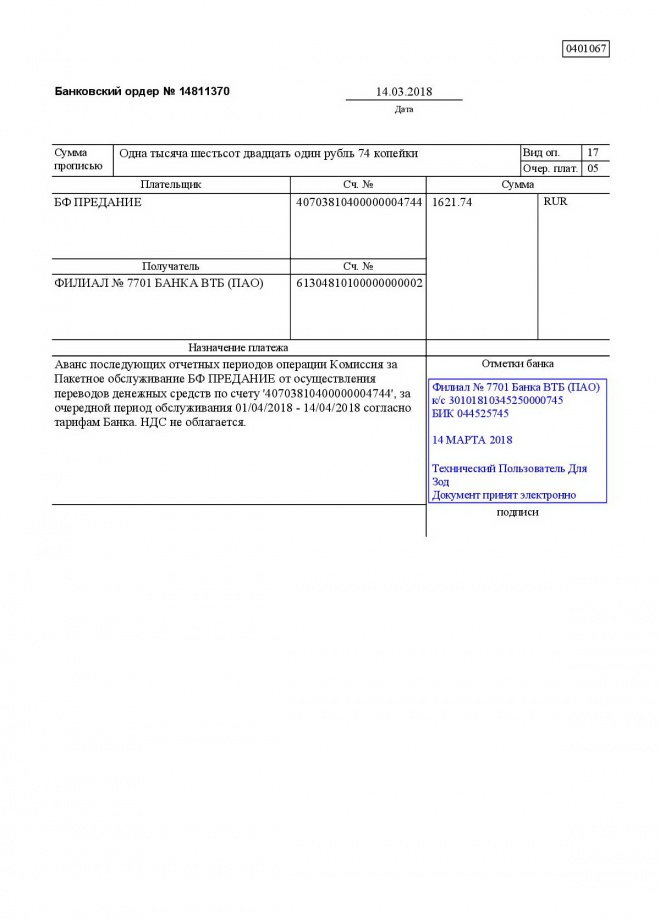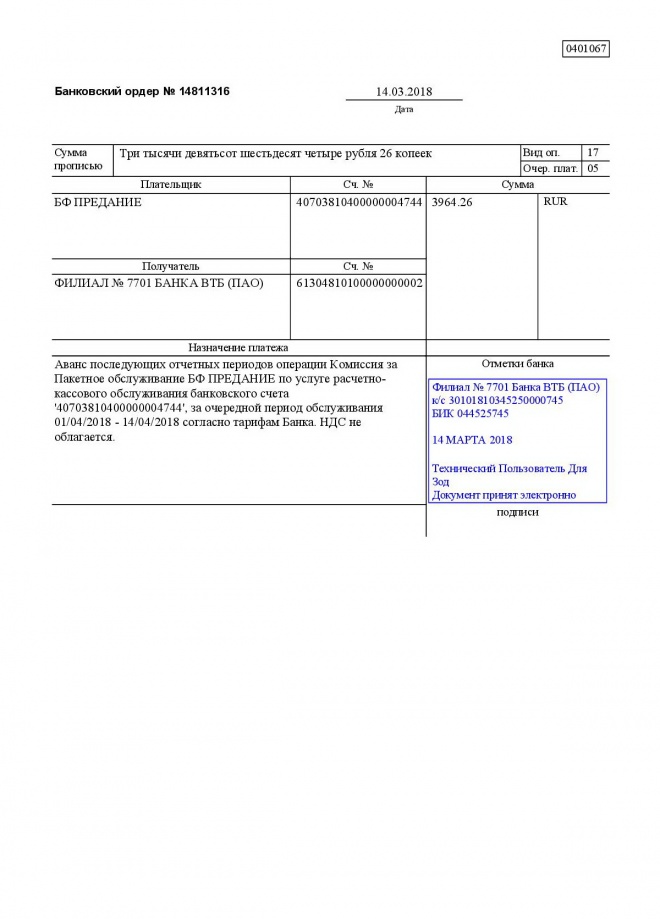 Комиссии по обслуживанию наших банковских счетов в марте 2018 г.