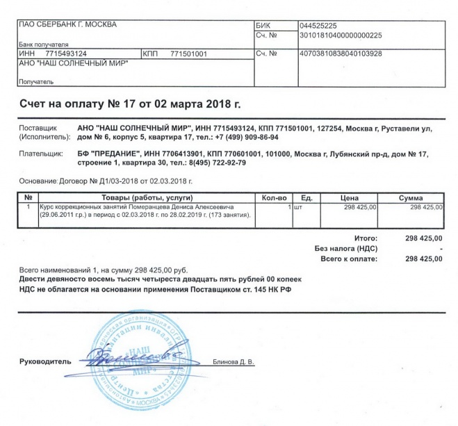 Оплачен курс занятий Дениса Померанцева в центре "Наш солнечный мир"
