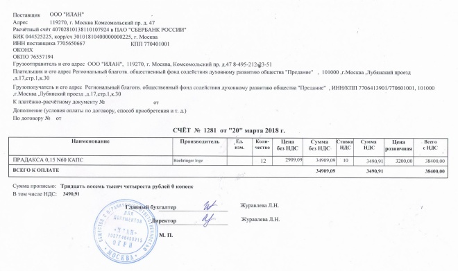 В рамках программы срочной помощи мы опять купили препарат "Прадакса" пенсионерке, инвалиду II группы Прасковьи Петровны Орловой