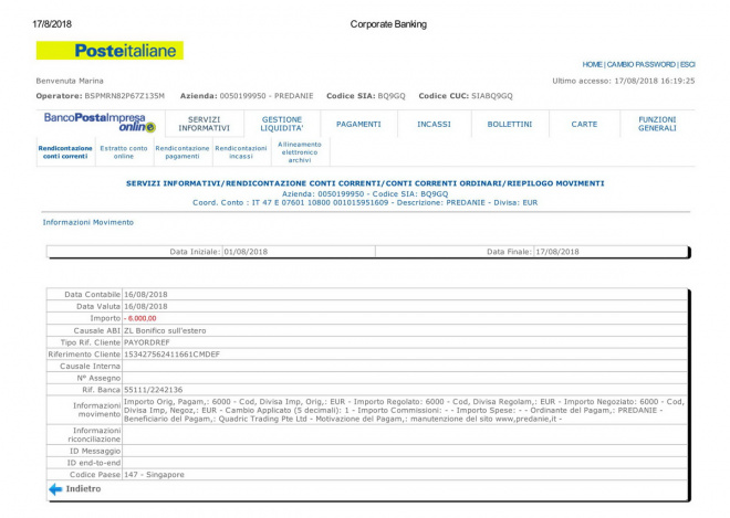 Переведены средства за работы по обслуживанию сайта в июле 2018 г. (перевод осуществлен со счета фонда в Италии)
