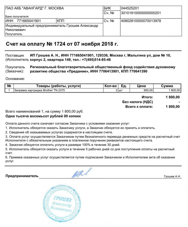 Пожертвование согласно ст.582 ГК РФ. Без налога (НДС)