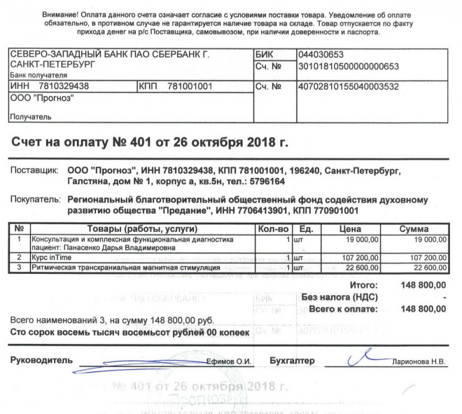 Пожертвование согласно ст.582 ГК РФ. Без налога (НДС)