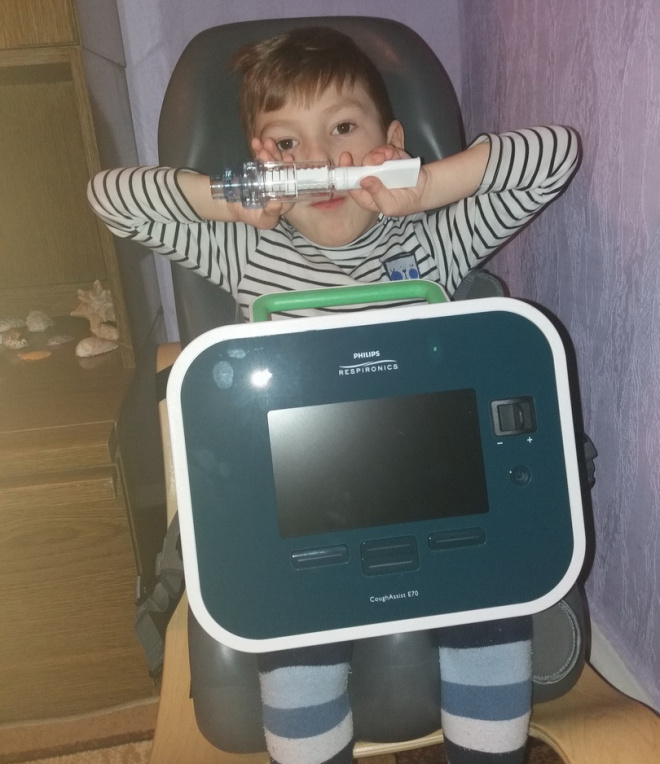 Благодаря Вам у Ростислава теперь есть откашливатель, очень удобное кресло и тренажер для тренировки дыхания.