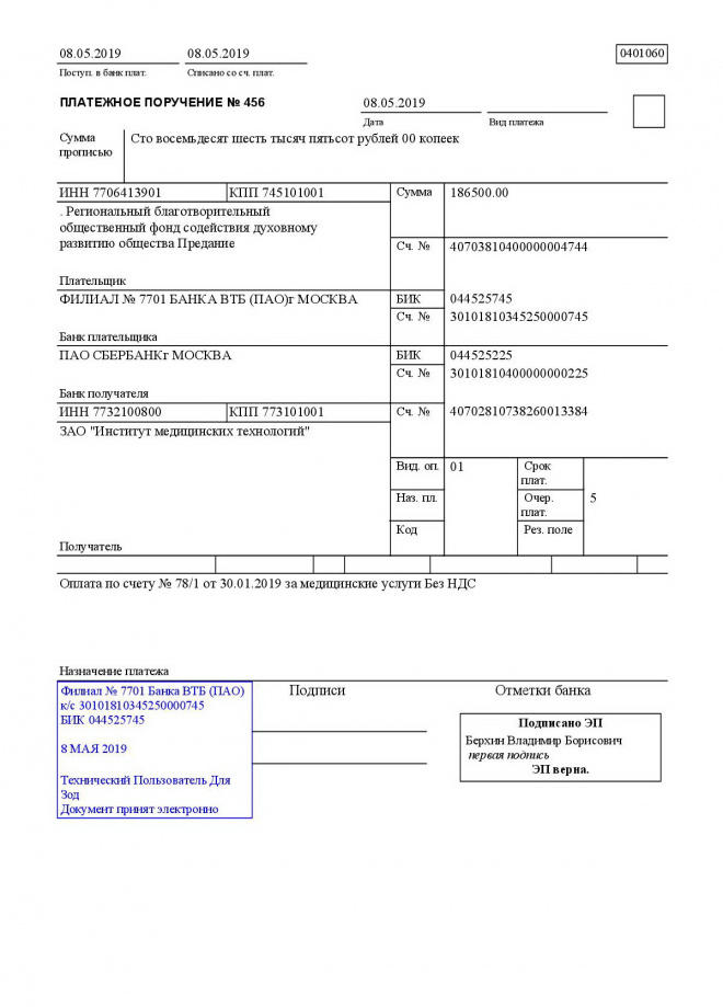 Пожертвование согласно ст.582 ГК РФ. Без налога (НДС)