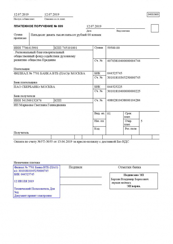 Оплачена покупка кресла-коляски инвалиду I группы Александру Васильевичу Соболеву, страдающему тяжелой формой сахарного диабета