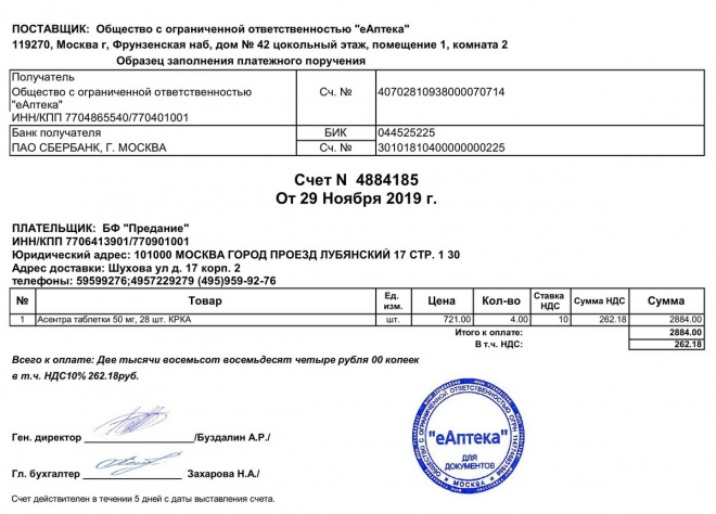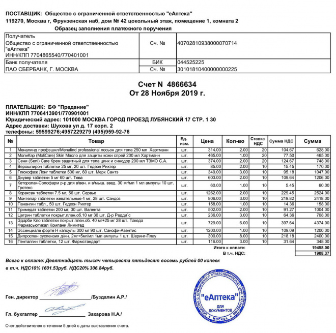 Лекарства для Владимира Александровича Голова