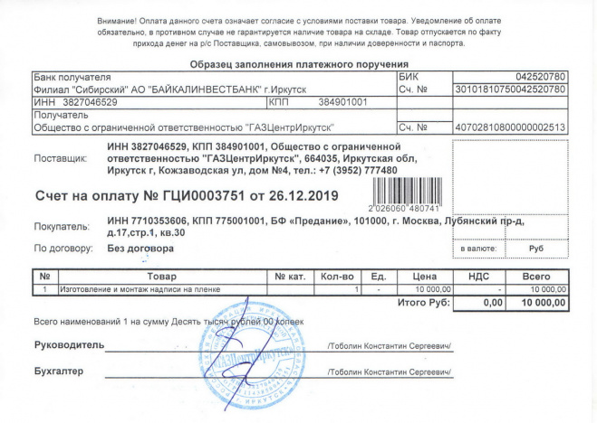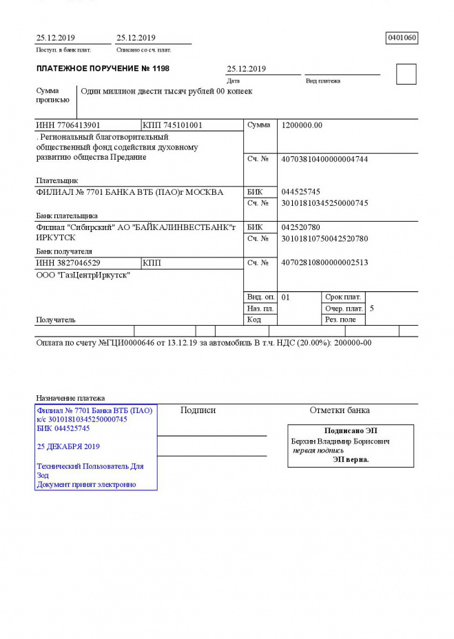 Оплачены счета за покупку машины скорой помощи и ремонт крыши (аванс) городской больницы г. Тулуна