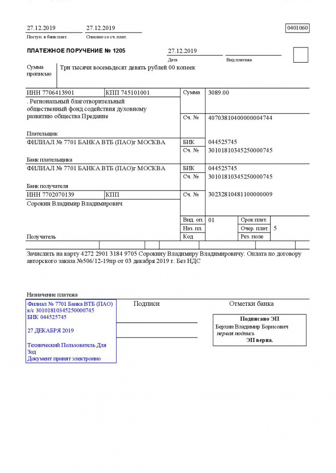 Переведены средства за проведение лекций, написание статей и съемку лекций в декабре 2019 г. Анастасии Борисовне Мещеровой (статья), Дмитрию Александровичу Ольшанскому (лекция), Наталии Владимировне Матвеевой (лекция), Марине Валентиновне Михайловой (лекция), Василию Андреевичу Гусаку (статья), Владимиру Сергеевичу Стрелову (лекция), Ольге Георгиевне Махо (лекция), Александру Максимовичу Коцкому (лекция), Тимуру Аркадьевичу Щукину (статья), Марии Сергеевне Сеньчуковой (статья), Дмитрию Викторовичу Сизоненко (лекция), Михаилу Юрьевичу Кукину (лекция), Андрею Андреевичу Ульяновскому (съемка), Владимиру Владимировичу Сорокину (лекция).