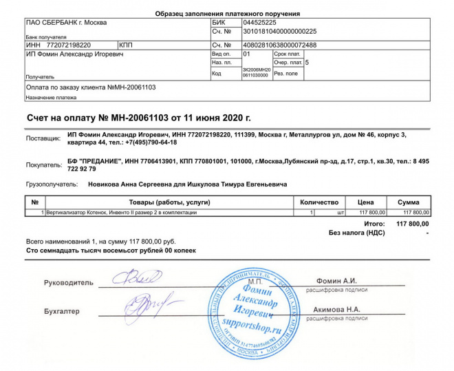 Оплачена покупка вертикализатора Тимуру Ишкулову