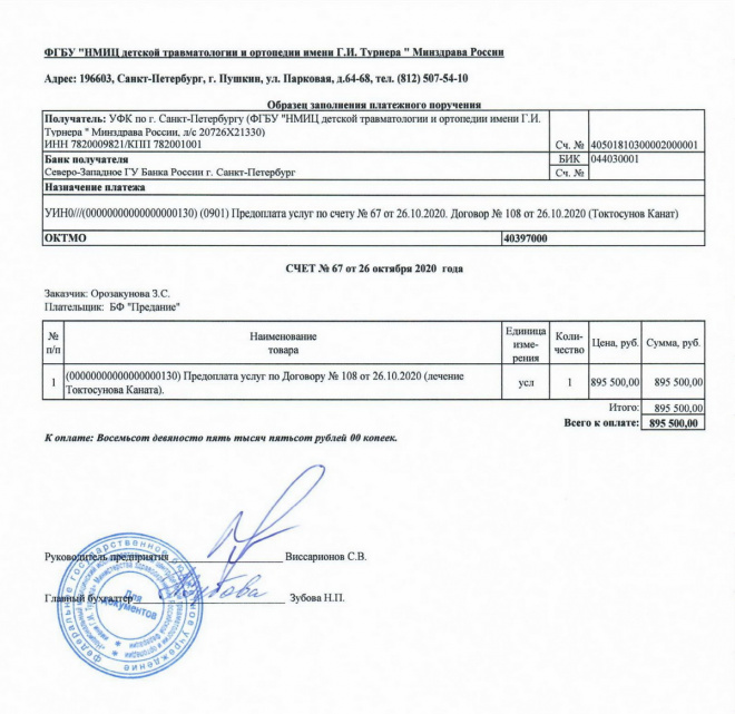 Перечислена предоплата за операцию и лечение Каната Токтосунова в НМИЦ детской травматологии и ортопедии имени Г.И. Турнера