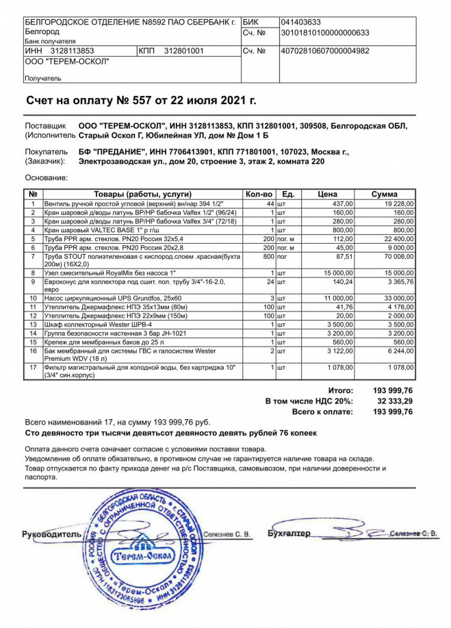 Оплачена покупка материалов, необходимых для проведения отопления в дом семьи Малей