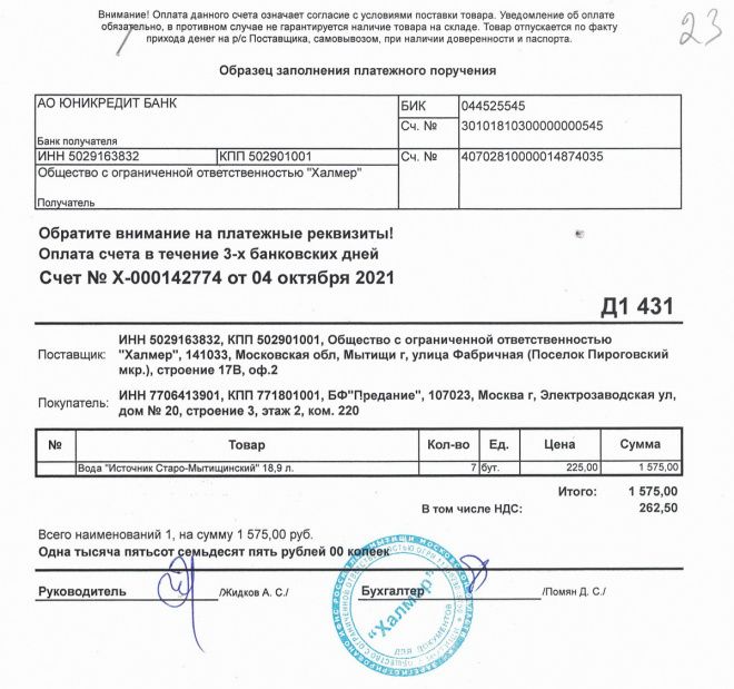 Пожертвование согласно ст.582 ГК РФ. Без налога (НДС)