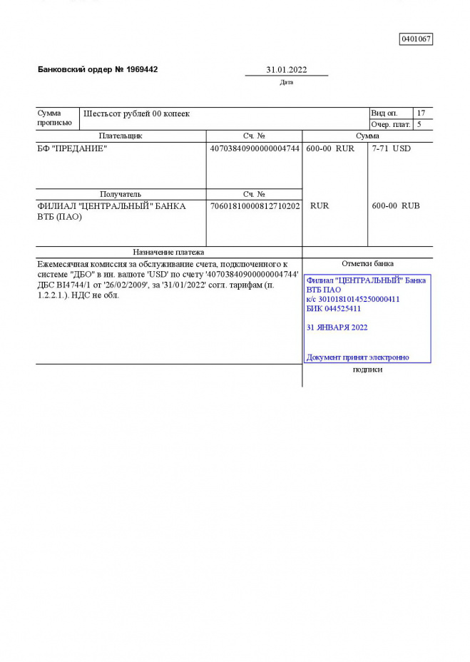 Комиссии по обслуживанию банковских счетов в январе 2022 г.