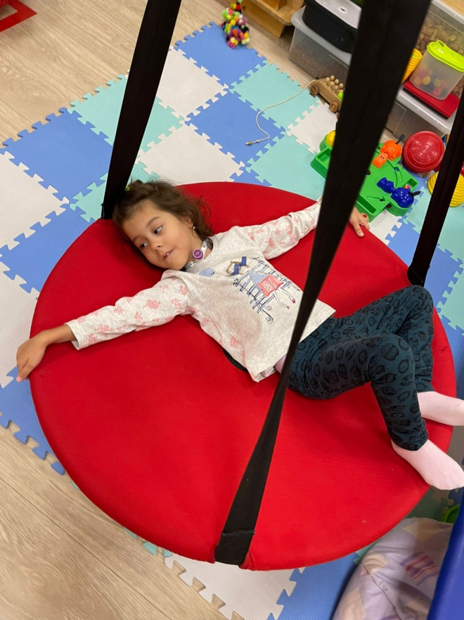 После курса тревожность ушла полностью, Ева стала доверять, проявляла высокий эмоциональный фон на всем занятии, с удовольствием шла на занятия, стало нравится быть самостоятельной - стала заниматься без мамы. Улучшились двигательные программы, ушла гравитационная неуверенность - стала качаться на всех качелях и гамаках без страха.