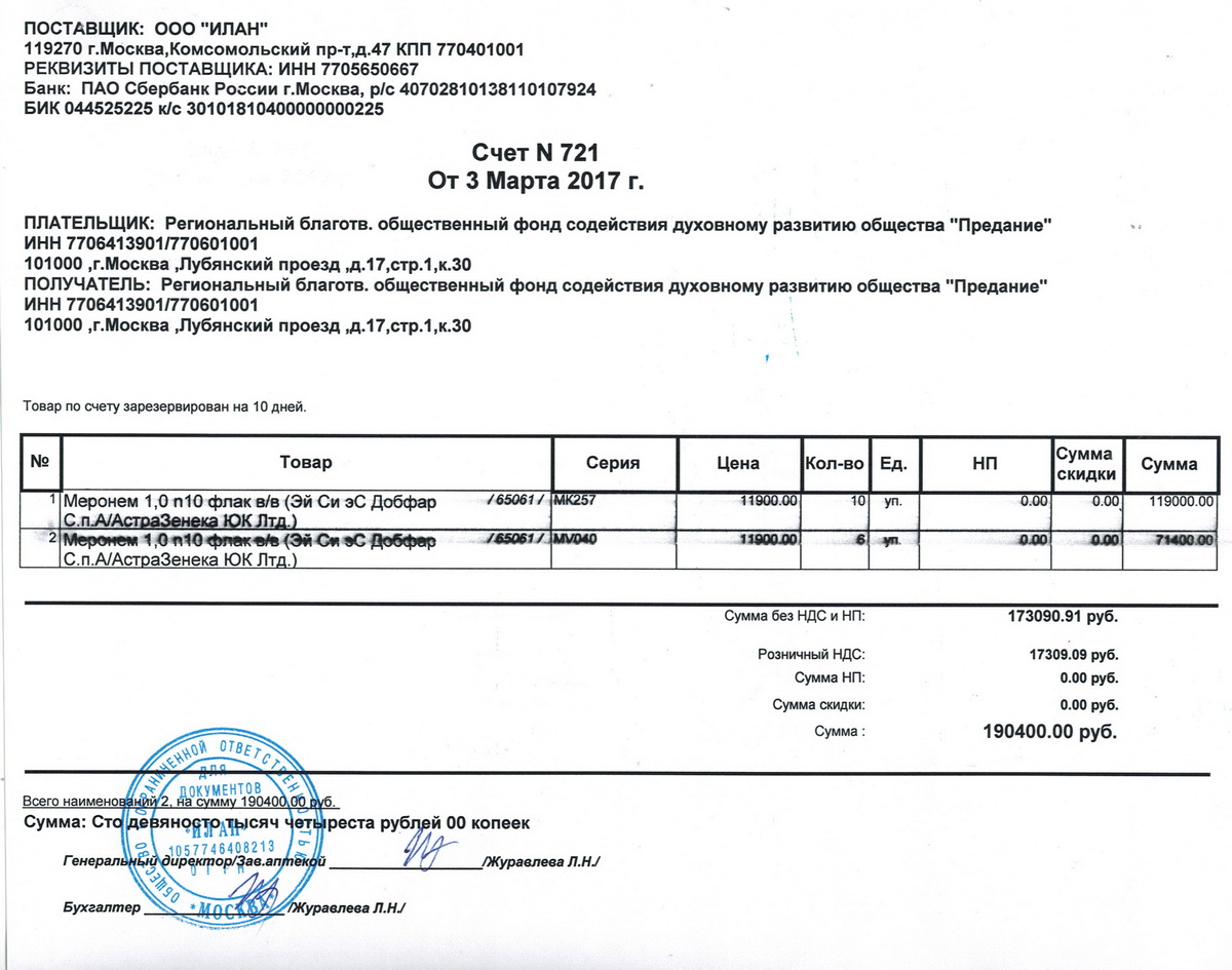 | 10.03.2017 19:43 | Расход | 60 000₽ | Выплата | Работа фонда - март 2017 года | Оплачен счет за бухгалтерское обслуживание портала "Предание" в марте 2017 года | |