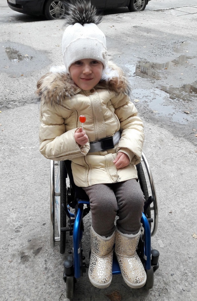 Полинушка живая. Она чувствует, она любит, она живёт, она общается с семьёй и другими детьми. У неё есть подружки, хотя она и вынуждена сидеть только в твёрдом корсете. У Полины сохранный интеллект, она учится в школе – пусть и по индивидуальной программе, но наравне со всеми детьми. И Полине нравится учится, ей нравятся книжки, ей нравятся - как всем - мультики, песенки, игрушки и мама.