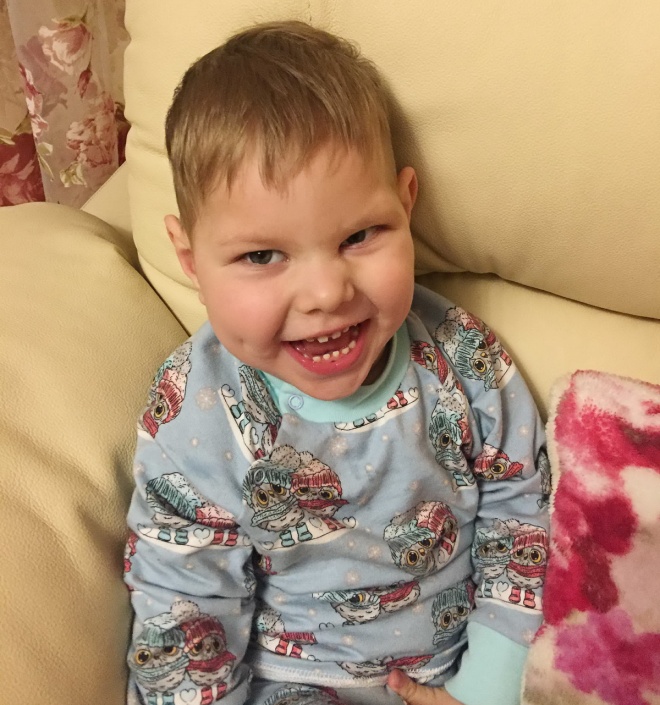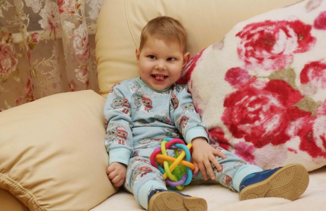 Нам бы очень хотелось, чтобы Максим, несмотря на заболевание, развивался как все обычные детки, и делаем все возможное, прилагаем все усилия. Сейчас ему 2,5 года, он не сидит, не ходит и не говорит. На фоне занятий состояние улучшилось – дольше лежит на животе, поднимает и удерживает голову, тянется к игрушкам, сидит только с опорой, есть опора на ноги. Максим узнает своих родителей, идет на контакт с другими людьми, многое понимает и каждый день радует нас улыбкой.