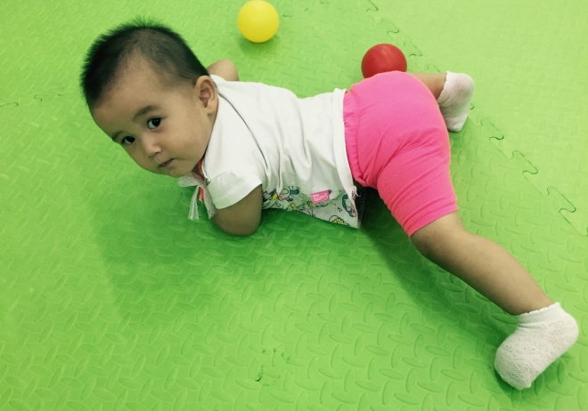 Шахина малышка, ей нет ещё и двух лет. Она умеет ходить, говорит несколько слов и очень задорно улыбается. Любит играть в большой мячик и вообще игрушки для мальчиков.