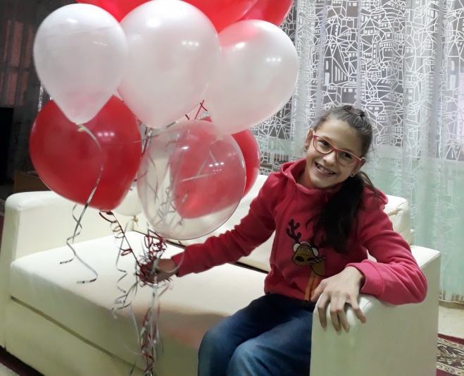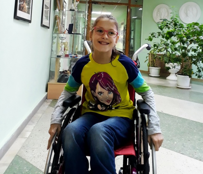 В умственном развитии дочка не отстаёт от сверстников, поэтому учиться пошла в обычную общеобразовательную школу. Окончив начальную школу на 4 и 5, она сейчас учится в 5 классе на одни пятёрки — одна из лучших учениц класса, имеет почётные грамоты за участие в различных конкурсах! Соня очень общительная и любознательная, много читает, любит петь и уже 4 года занимается вокалом. С этого года дочка осваивает основы работы на компьютере. Она постоянно выступает на отчётных концертах, а в этом году первый раз участвовала в конкурсе проектов, который сама создала на компьютере!