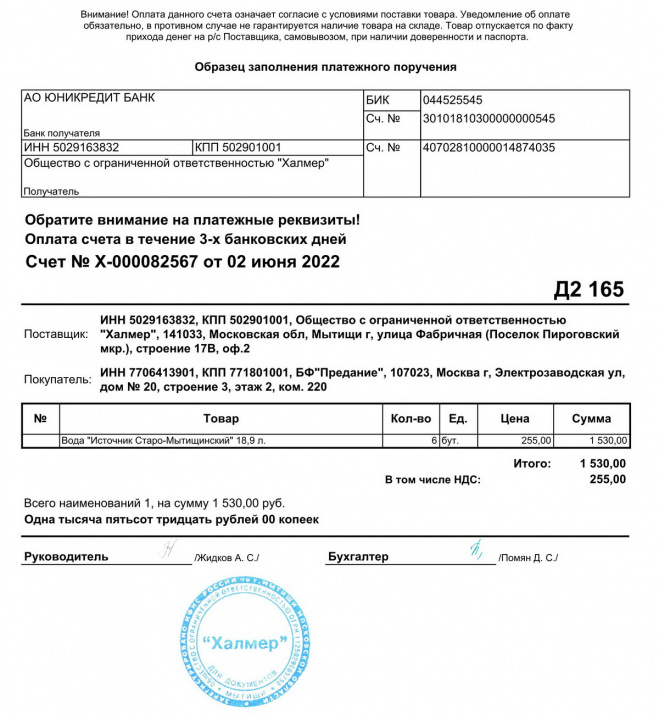 Оплачена покупка питьевой воды для офиса