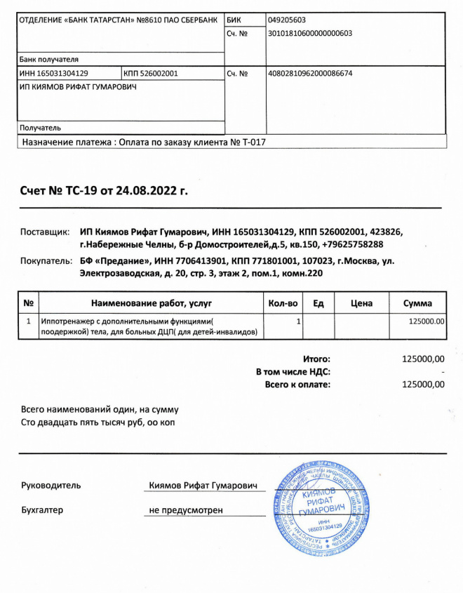 Оплачена покупка иппотренажера Азалии Бадртдиновой