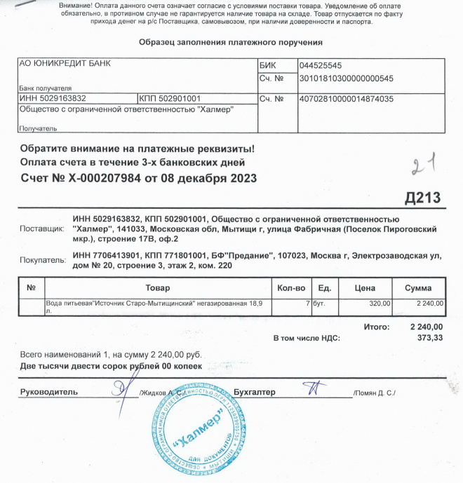Пожертвование согласно ст.582 ГК РФ. Без налога (НДС)