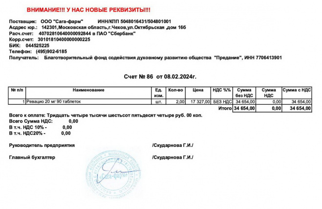 Оплачена покупка двух упаковок препарата "Ревацио" Даниилу Романову