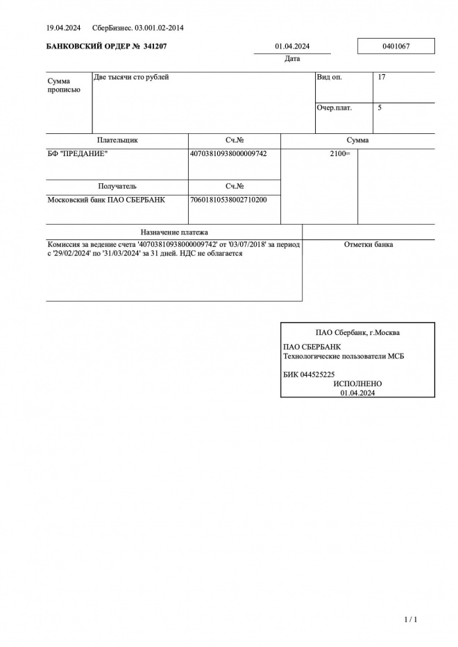 Комиссии по обслуживанию банковских счетов в апреле 2024 г.