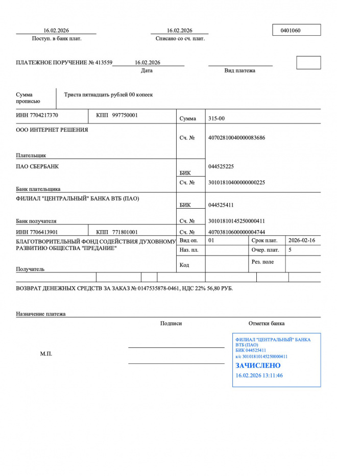 © 2008 — 2026 Благотворительный фонд «Предание» НКО №7712031589