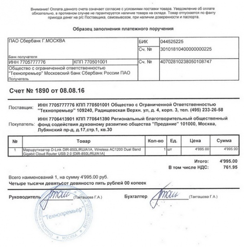 Пожертвование согласно ст.582 ГК РФ. Без налога (НДС)