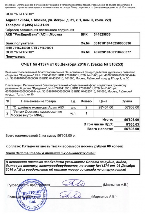 Оплачена покупка техники и материалов для восстановления студии "Предание"